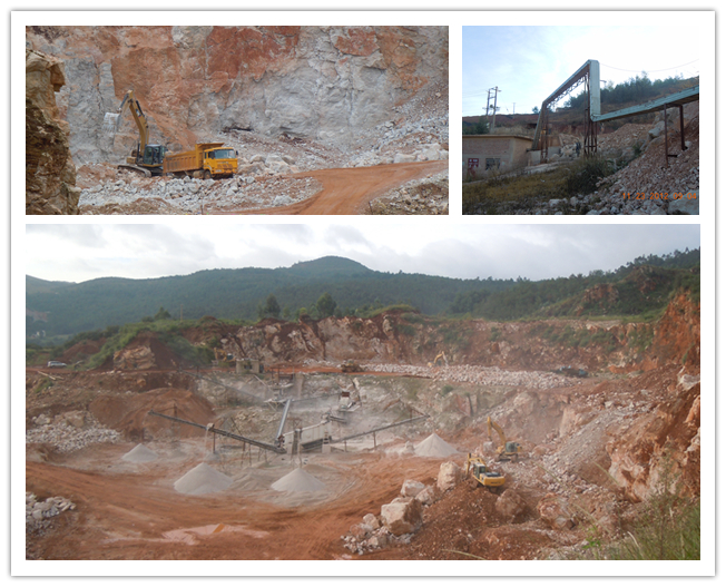 爆破后由挖掘機(jī)剝離礦石覆蓋物,利用裝載機(jī)將少量的廢石運(yùn)輸至工業(yè)場(chǎng)地的平整和道路的修復(fù),礦石一部分通過裝載機(jī)鏟運(yùn)運(yùn)至破碎機(jī)受礦口,大塊的礦石通過挖掘機(jī)進(jìn)行破碎后通過裝載機(jī)鏟運(yùn)至破碎機(jī)受礦口進(jìn)行破碎。