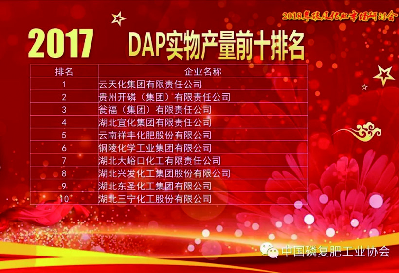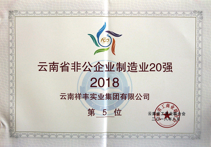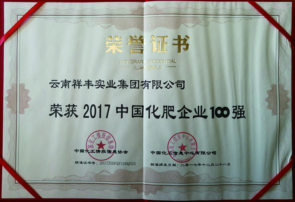 2018年12月16日,2018(第十一屆)中國化肥企業(yè)100強(qiáng)發(fā)布會暨國家化肥品牌計(jì)劃高峰論壇在山東青島舉行。云南祥豐集團(tuán)位列中國磷復(fù)肥企業(yè)100強(qiáng)第十名,中國化肥企業(yè)100強(qiáng)第十九名