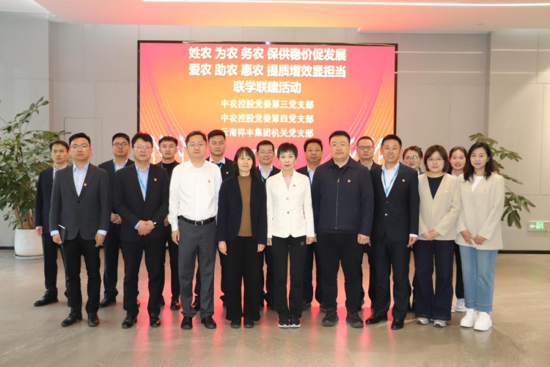 2025年4月2日上午,云南祥豐實(shí)業(yè)集團(tuán)黨支部與中農(nóng)集團(tuán)控股股份有限公司第三支部、第四支部開展聯(lián)學(xué)聯(lián)建主題黨日活動(dòng)。其間,雙方成功簽署戰(zhàn)略合作協(xié)議。祥豐集團(tuán)總經(jīng)理?xiàng)铥惙?,黨委書記魯留定,工會主席劉國昌及相關(guān)業(yè)務(wù)部門與中農(nóng)控股黨委副書記、總經(jīng)理王秦燕,第三支部書記、磷復(fù)肥事業(yè)部部門經(jīng)理閆曉亮,第四支部書記、原料肥事業(yè)部部門經(jīng)理?xiàng)顕舻纫恍谐鱿?lián)學(xué)聯(lián)建暨簽約儀式。